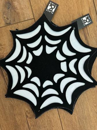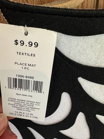 SET OF 4 PLACE & TIME HALLOWEEN TEXTILES SPIDER WEB DÉCOR OR PLACEMATS BLACK & WHITE NWT