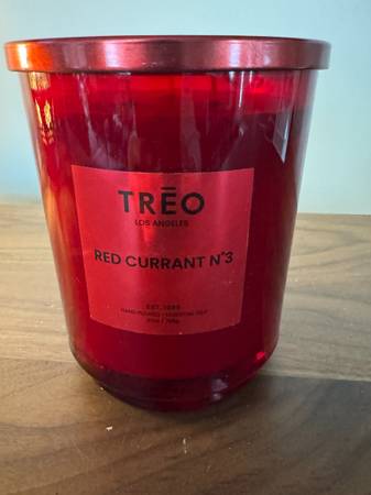 TREO Los Angeles RED CURRANT N”3 WICK HAND POURED CANDLE 25 oz in glass Jar with lid. New