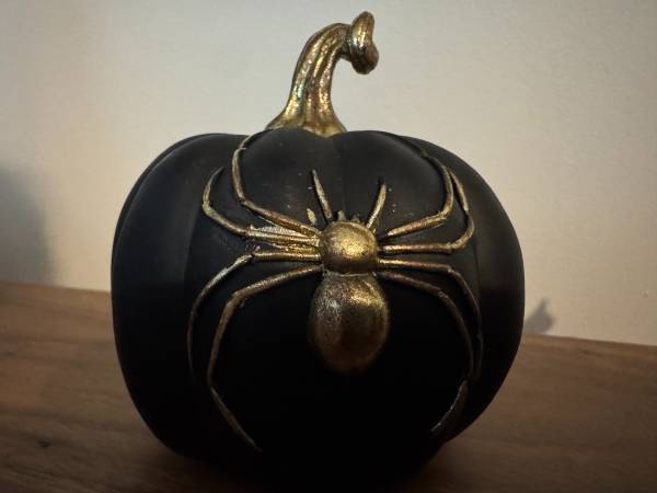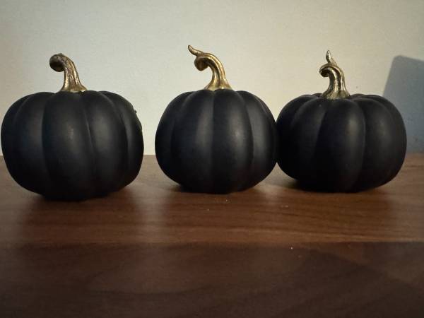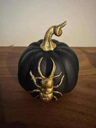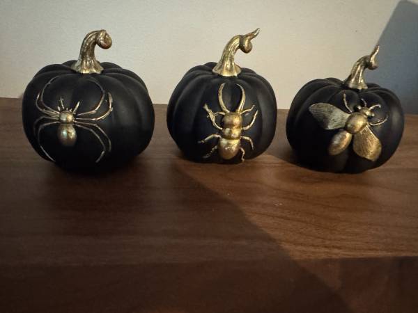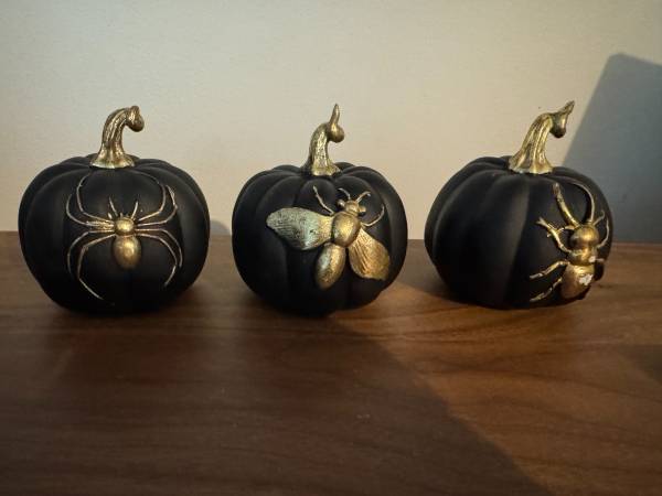 UNIQUE Set of 3 Christian Lacroix Gold Tone Insects on Black Pumpkins Brand New 4.25” Halloween NEW