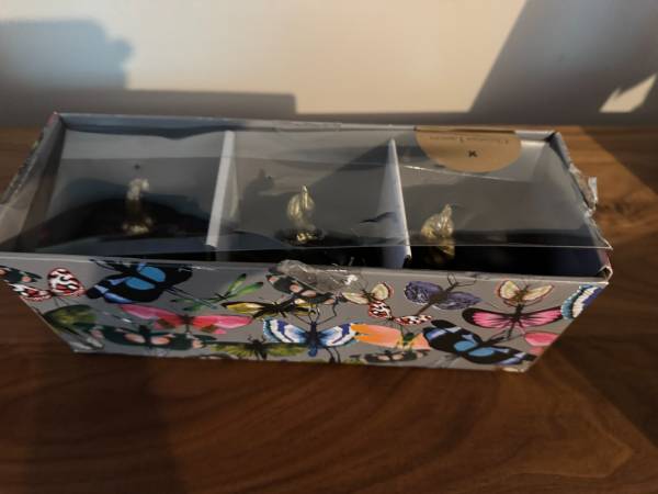 Christian Lacroix Gold Insect Black Pumpkins Set Of 3 Brand New 4.25” Halloween\Set of 3 black pumpkins each with a different insect in gold. Perfect for classy holiday home decor.