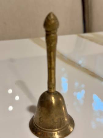 Pre owned vintage brass bell with its original clapper and a pineapple at the top. It has a nice patina to it and is in excellent working condition.