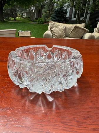 It is a beautiful crafted piece of heavy crystal that would make a statement for anyone who enjoys a good cigar or who smoke cigarettes. It is in excellent condition. I do not see any chips or cracks. It doesn't show any signs of use.