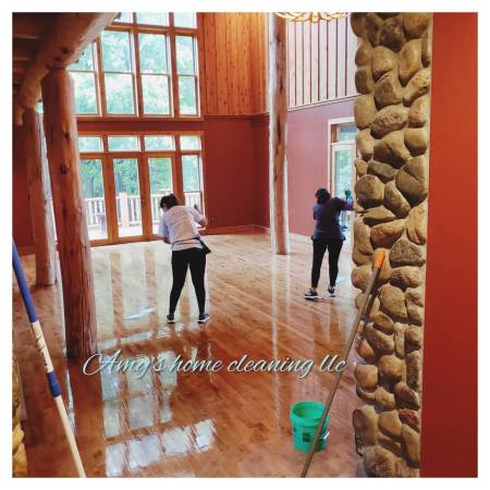 vacuum carpet, mop floor, bathroom's, living room, kitchen, wood floor, we use wood treatment if it's ok..