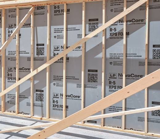 LP NovaCore Thermal Insulated Sheathing offers a long-term R-value that stays reliable at R-5 per inch and increases with cooler temperatures without concern of degradation.