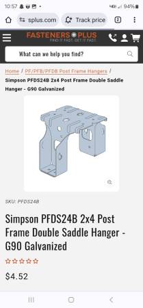 Simpson Hanger brackets pfds24b 2x4 post frame saddle Hanger. 150 total.