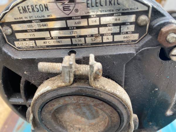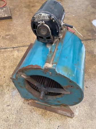 Works. 1/4 hp , 1725 RPM motor. Could use some clean up. Outlet is 13 high x 11 1/2. Check your spam box. 77cvn