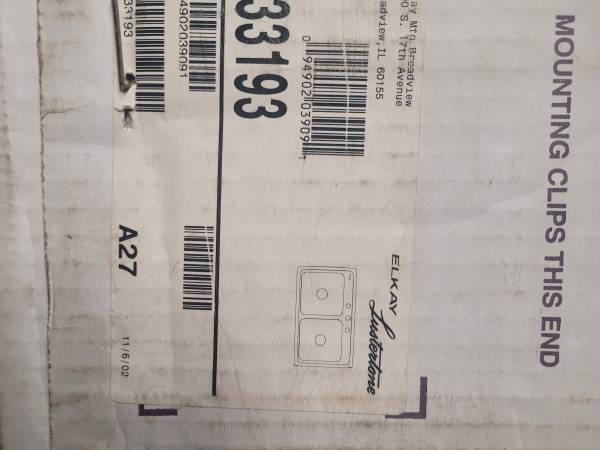 New in box stainless steel sinks Ge233213 ..100.oo Drkad3119654...600.oo Psr17203..240.oo Lr33214...600.oo P225193..100.oo Look up model number to get more information.
