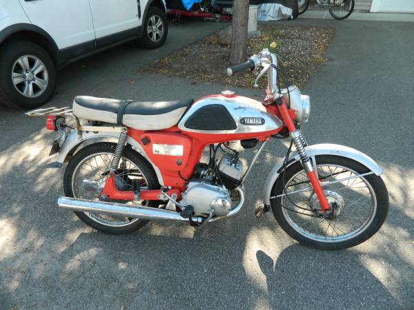 Make this your winter project. It is a perfect motorcycle for full restoration as it is ALL ORIGINAL Very Rare: 1966 Yamaha100 twin YL1 road bike. These were some of the first imported motorcycles in the USA, the beginning of the civilian market of recreational motorcycles. I have stored it indoors for over 50 years and now realize, even in retirement, I'm not likely to do a proper restoration now! Gas tank, frame, and fenders are solid with only some normal surface imperfections. Just over 7500 miles on it. Engine has compression and is in very good condition. Original seat is in very good condition as well. I have seen these sell for over $7000.00 dollars fully restored.
