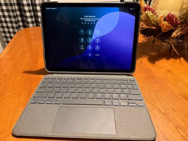 Comes with Logi Keyboard Folio case with touchpad and backlight keyboard. Perfect condition screen. No scratches on the screen or back of the device.