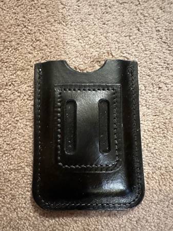Leather Cell Phone holster holds cell phone 3 X 6. Like new condition in black.