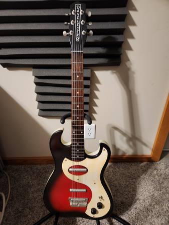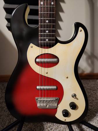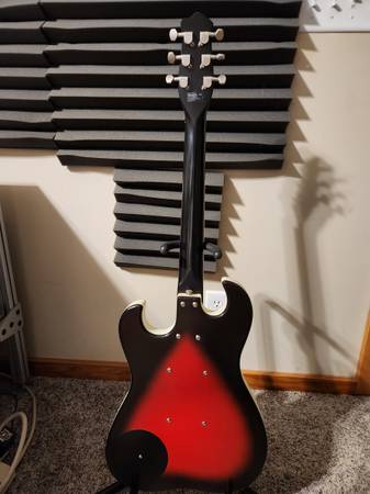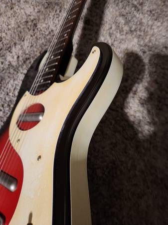 This is a really fun guitar. It plays and sounds great. It just had a fresh setup and has new strings. The pickguard has some cool looking yellowing. I would keep this one if I had more room.