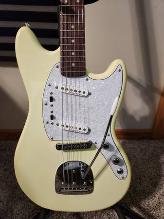 This is a brand new Fender Mustang guitar copy and is fully setup. Fully setup means that there are not sharp fret ends, high frets, has the proper neck relief, is intonated, and has new strings.