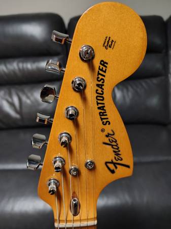 Looking to sell Fender Vintera "70's" Stratocaster! This guitar is a stone killer, tone vicars dream. Alder body. Maple fretboard and large CBS style headstock add up to one cool guitar-looking great to top it off. NOW comes the reason I would love to keep it. Seymour Duncan pickup in the bridge position happens to be the best sounding PUP I've ever heard. It's a Seymour but with a silent single coil with it that's totally hum canceling! Killer tone. No push-pull coil tapping, just Seymour TONE, lots of TONE. KILLER LOOKS ROUND OUT THE PACKAGE WITH WD pickguard and rear cover plate. If looks could kill! Yep it's a 3 bolt neck that stays in tune seemingly forever. Buy it for $950 with Deluxe Fender, heavy padded gig bag before I decide to just keep this one. Offers are ok, but unlikely if not razor close to $950.