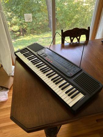 Vintage 1980’s Casio keyboard model CT-638. Tested and working great! In good used condition. This can take batteries (D) or AC charger which neither are included. Comes with a music sheet stand....
