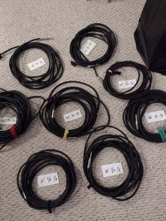 Getting out of the band PA business. I have a number of speaker cables for sale. Pair (matched - 2nd pic) of 25' 1/4 to banana - $25 for the pair Pair of 25' 1/4 to 1/4 - $25 for the pair 20' banana...
