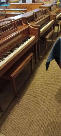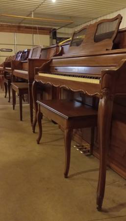 Piano clearance. Semi-retired piano tech. Great selection of excellent console pianos starting at $695.00 including delivery (metro area--main level). Tuned and fully serviced and cleaned. As a pro-shop we hand select each piano for condition and performance. Any questions call Jerome at show contact info