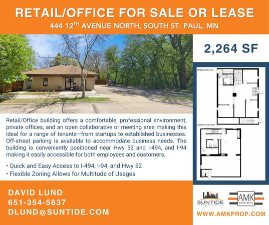 This Retail/Office building for Sale or for Lease offers a comfortable, professional environment, private offices, and an open collaborative or meeting area making this ideal for a range of tenants—from startups to established businesses. Off-street parking is available to accommodate business. The building is conveniently positioned near Hwy 52 and I-494, and I-94 making it easily accessible for both employees and customers. Area retailers include Target, Walmart Supercenter, Gertens, Hobby Lobby, Menards, Lowe's, The Home Depot, and a diverse variety of local and national restaurants.