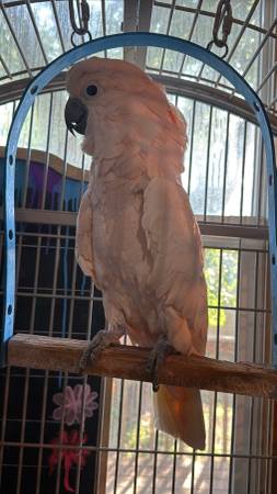 She does have a large cage and a travel carrier that will go with her and whatever food she has left.