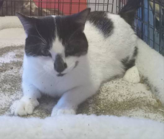 My name is Buttons and I am a fully vetted adult male cat that is approx 2 years old that was previously apart of a welfare case but that is over now and i am ready to find my forever home. Buttons is very sweet and social cat. This polar bear would love to find a family of his own. He is good with all humans including young children. He would make a great family pet as he doesn't mind being picked up and doesn't mind noise or being around children. He likes toys and especially cat nip which is what is all over him in the pictures and equally loves exploring. He tends to be confident kitty as well. He doesn't have an aggresive bone in his body towards humans but needs to be an only cat. He does go after other cats on sight. We do not know how he is with dogs but guessing would do best as a solo pet. He would really like to have a family of his own to spend the holidays with. If you are interested in Buttons, to find out more about how our adoption process works and to setup a meet and greet. There is a rehoming fee as he is fully vetted.