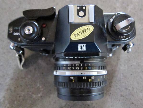 This camera looks to be in good condition, clean inside and out, shutter trips, film advance works, timer works. Light meter is not working. Camera has not been film tested. Lens is clean and clear & works includes lens filter and lens cover. CASH ONLY