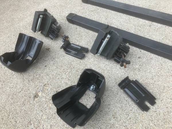 PLEASE NOTE: there is a crack on one plastic piece that fits over the metal mounting bracket(see pics 8-10). The piece appears to be used mainly as a shielding, and also to guide the locking cover over the mounting bracket. The crack does not affect the overall function - the metal mounting bracket itself carries all the stress from mounting and weight from the crossbars.