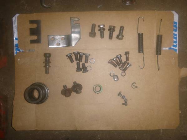 Have a complete clutch installation package for converting your powerglide automatic trans to a manual stick shift setup for a 1964 Chevrolet Impala, Belair, or Biscayne. Parts include pedal assembly, bellhousing, flywheel, pressure plate and clutch disc are for cores if your auto parts store requires cores when you buy new ones, z bar pivot, clutch fork, throw out bearing, bronze crankshaft pilot bushing, engine block z bar pivot ball stud, both linkage rods, both linkage springs, flywheel tin inspection cover, and all the factory mounting hardware bolts, washers, shims, etc. Part number on bellhousing is 3858403. Part number on flywheel is 3791021. This is all the parts for installing a clutch in your 1964 Chevrolet Impala, Belair, or Biscayne. Price for all pieces is $500. Phone number is show contact info