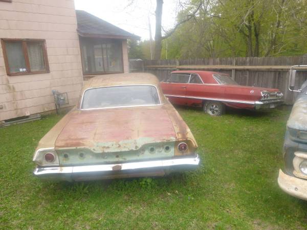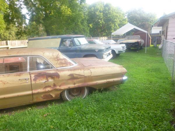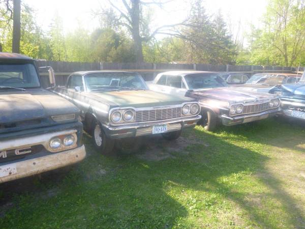 Have a ton of 1961 1962 1963 and 1964 Chevrolet Impala, Belair, Biscayne, and Super Sport parts. Parts include sheet metal, chassis, steering and suspension, interior, driveline, etc. Have fenders, doors, deck lids, hood, bumpers, driveshafts, coil springs, power steering set-up, control arms, steering columns-no tilt, steering shafts, tranny crossmembers, rear diff main housing, front bumper main brace, inner fenders, grills, instrument clusters, speedometers, glove box doors, headliner bows, interior and exterior trim-mouldings-emblems, front sway bars, rear drive axles, window regulators, vent window assemblies, front and rear bumper braces, individual bumper sections, hood and trunk latches, 3 speed manual tranny, 64 Impala SS powerglide tranny, windshield cowl vents, chrome wiper arms, wiper transmission linkage, kick panel vents, front lower grill panel, engine mount brackets, flywheel covers, powerglide flywheels, and many other related parts. Also have some 1960-1966 Chevrolet and GMC pickup parts. Phone 507-32one-084one. TEXT MESSAGES AND EMAILS WILL NOT BE ANSWERED.