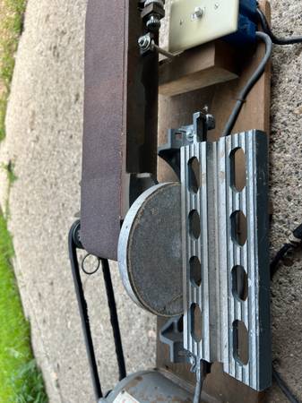 What we have hear is some innovation. We have a Dayton motor driving a belt sander and a side sander wheel. Great for any shop , multiple purposes . This even works could use a new belt and a little...