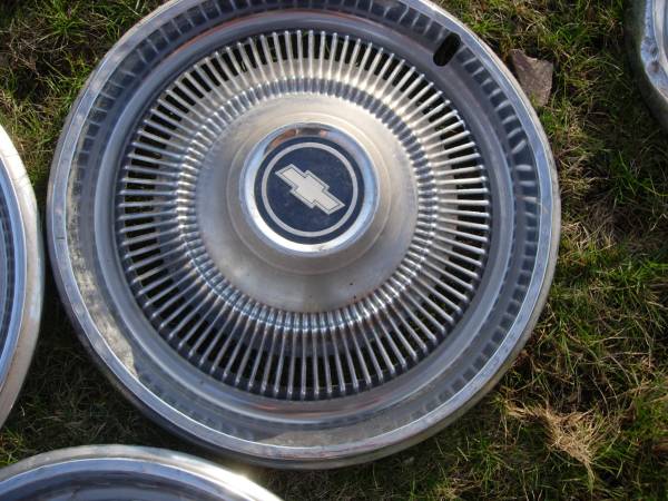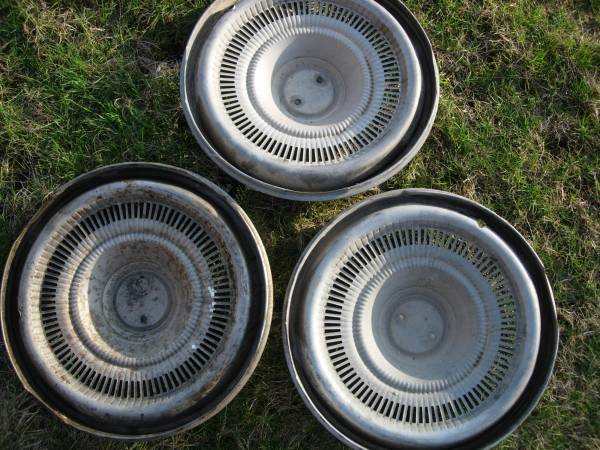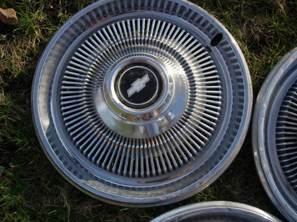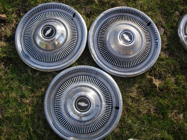 i have a set of 3 hubcaps from 1960's-mid 70's Chev impala/caprice. they have some small dents and dings from use but still look good. 50.00 for the set of 3/OR OFFER CASH ONLY