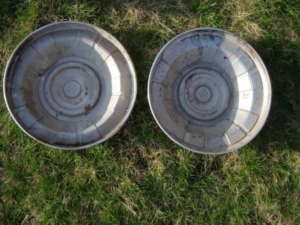I have a pair of Rambler Dogdish Hubcaps. not sure what year they fit, they have dents still look good for your car or garage wall 20.00 for the pair CASH ONLY