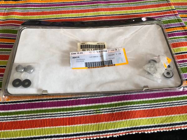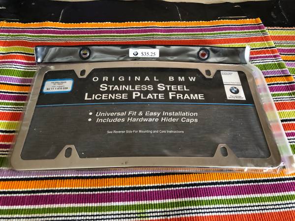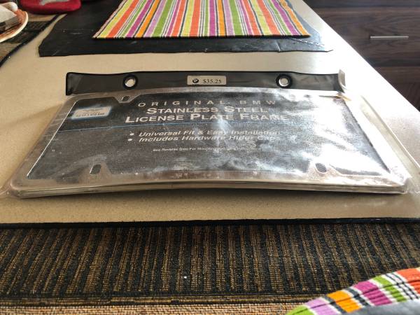 For sale is a brand new original BMW stainless steel Curved license plate frame. Universal fit, easy installation, includes hardware hider caps. Send an email. Thank you!