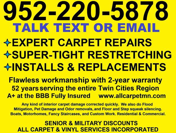 Carpet Repair Stretch Restretch Installs Call or TEXT 952-220-5878 (All 7-County Twin City Metro Area Full Coverage)