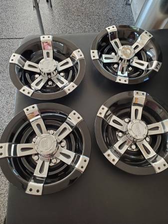 Set of 4 wheel covers black/chrome snap on covers cash only