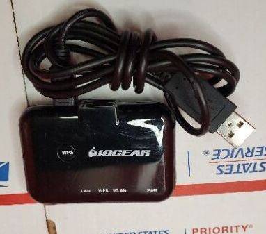 Includes the IO Gear GWU627 Wireless Adapter, USB power cable, RJ45 ethernet net cable.