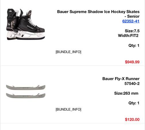 1 season of use Bauer Shadow skates have been out grown. Skates are in great shape…just have moved on to a larger size. Original price paid last season shown.