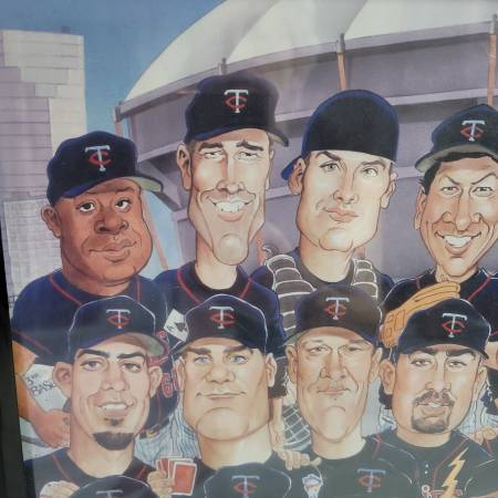 Minnesota Twins Team Players Caricature Poster 25"x19". This poster was a promotional item. The year of printing is unknown(2003-2006, perhaps). I believe that the artist is Tom Richmond.