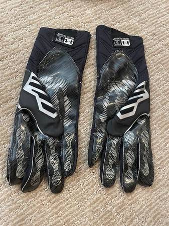 Under Armour Skill Gloves - NEW from a smoke-free, pet-free home. Size X-Large, Black and silver, Football Gloves, style 1248298. $40 cash only.