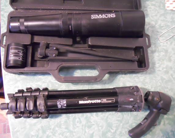AS PICTURED A SIMMONS SPOTTING SCOPE AND MANFROTTO TRIPOD. CASH PICK UP, NO VOICE MAIL.
