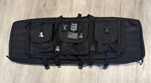 Like new, soft rifle case. Multi pockets to hold range gear and 2 rifles. Only used to transport rifle to range a couple times.