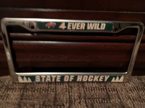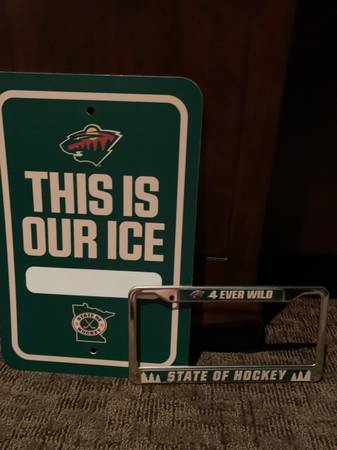 MN Wild sign and license plate frame both for $10.00 cash 18x12 both new