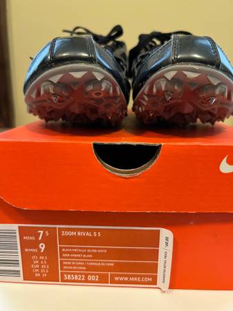 Nike Zoom Rival S5 spikes $20.00 black/metallic silver-white men's size 7 1/2 woman's size 9