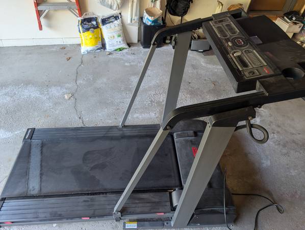 Treadmill. $75 OBO. Foldable. Electronics work. Pick up in Eagan, MN. FCFS. Cash only. Must be able to haul away yourself. Listed in multiple places.