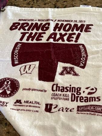 5 different Gopher Football Towels repurposed into Golf Towels Asking $20 for the lot. Best offer Six one Two 210 72sixsix