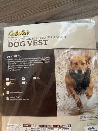 I have hunting dog accessories for sale. -Thermal Kennel Cover - $50 (I had a standard size kennel for a 75lbs Lab) - Neoprene Armor Flex Floatation Dog Vest - size XL - $20 (never been used in...