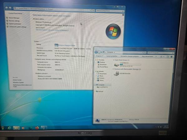 Windows 7 Pro 32bit has been installed, updated, and activated.