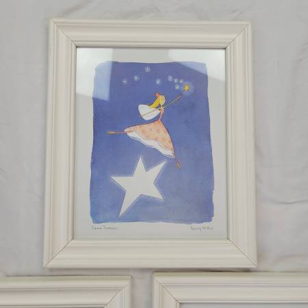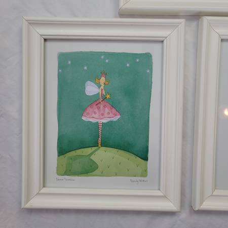 3-8x10 Framed Felicity Wishes Fairy Prints :V, VI and VII by Emma Thomson. The white frames have some cosmetic wear.