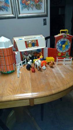 1967 Vintage Fisher Price Little People Play Family Farm And Silo #915 18 PCS also fisher price teaching clock good condition little faded from old age. $45 Dollars cash only Firm on price. Located...