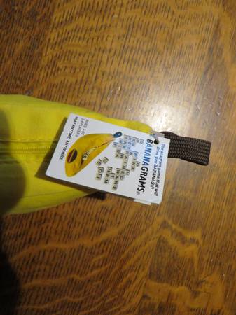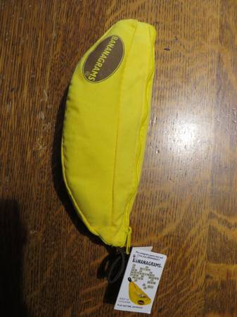 Bananagrams Crossword word tile game. New, factory tag sealing zipper. Gift quality. $10