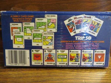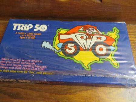 Game—Trip 50 family card game for ages 8 and up¸1-8 players. New in box. Shrink wrap of box has opened on the bottom, but the card decks inside are still wrapped up. $10