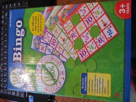 Leap Frog Bingo—pre-owned but complete, in original box, and excellent condition. For ages 3 and up, six different ways to play. $10
